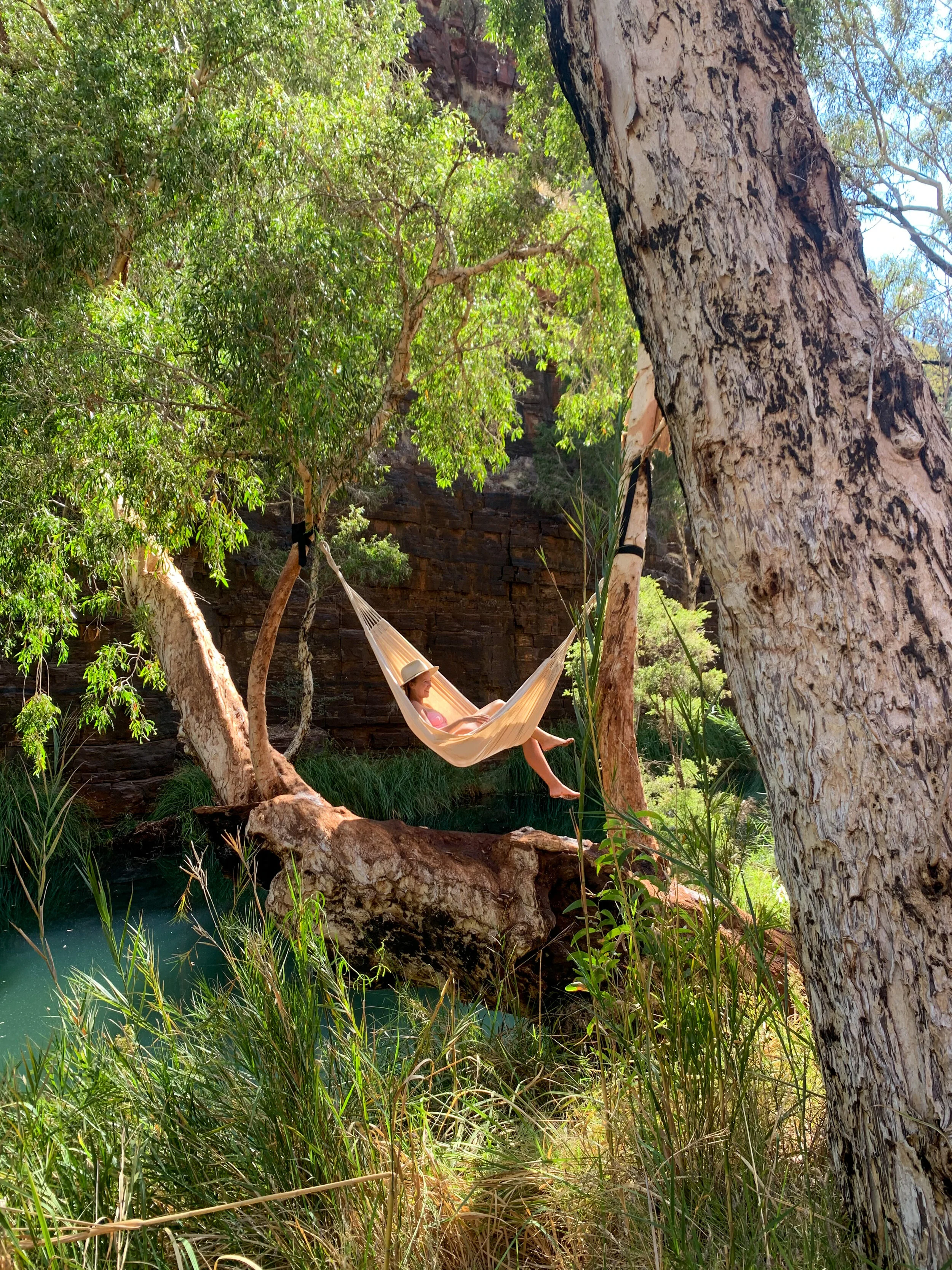 I cannot recommend this walk enough! It follows the creek at the bottom of Dales gorge, linking Circular Pool and Fortesque Falls. See if you can find the tree that hangs over the creek. We strung up the hammock and spent hours jumping off into the water. Some of my favourite memories from the whole trip! Also keep an eye out for lizards sunning themselves. We counted more than 5!